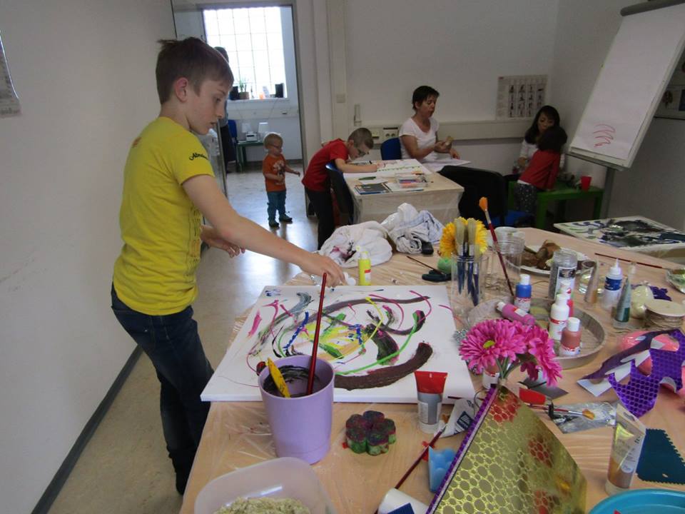Wir malten mit den Kindern Bilder, die wir auf unserem Sommerfest am 30. Juni 2018 versteigern wollen.